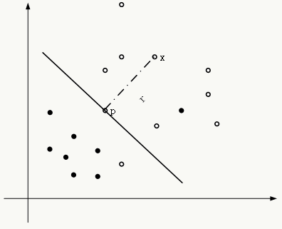 从几何关系上来看,超平面与数据点的关系如下(以正样本点为例): \[ \begin{array}{l} x_i=p_i+\gamma_i\frac{w}{\Arrowvert w\Arrowvert}\\ \text{where the p is point x's projection on the hyperplane.}\\ \Leftrightarrow w^Tx_i+b=w^Tp_i+b+\gamma_i\frac{w^Tw}{\Arrowvert w\Arrowvert}\\ \because f(p_i)=0\\ \therefore f(x_i)=\gamma_i\Arrowvert w\Arrowvert\\ \Rightarrow \gamma_i=\frac{f(x_i)}{\Arrowvert w\Arrowvert}\\ \text{consider two cases(label=}\pm1\text{)}\\ \Rightarrow \gamma_i=\frac{y_if(x_i)}{\Arrowvert w\Arrowvert}\\ \text{set}~~\tilde{\gamma_i}=y_if(x_i)\\ \Rightarrow \gamma_i=\frac{\tilde{\gamma_i}}{\Arrowvert w\Arrowvert} \end{array} \]