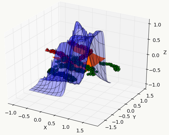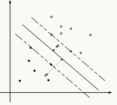 \(C\) 越大表明你越不想放弃离群点,分类超平面越向离群点移动当以上问题求得最优解\(\alpha^*\) 后,几何间隔变成如下形式: \[\gamma=(\sum\limits_{i,j \in \{support~vectors\}}y_iy_j\alpha_i^*\alpha_j^*K(x_i,x_j))^{-1/2}\] 它只与有限个样本有关系,这些样本被称作支持向量,从这儿也能看出此时模型参数个数与样本个数有关系,这是典型的非参学习过程。