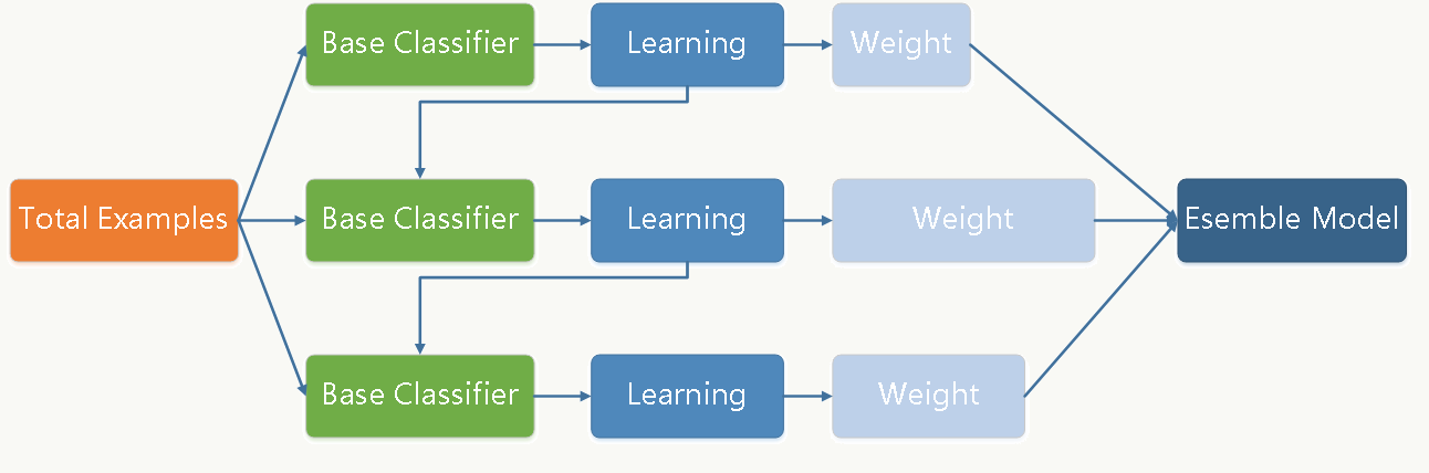 2.4.2 Boosting框架 Boosting(Freund & Shapire, 1996) 通过迭代方式训练若干基础分类器,每个分类器依据上一轮分类器产生的残差做权重调整,每轮的分类器需要够“简单”,具有