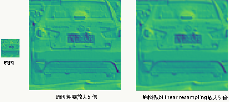 1 2 3 4 5 6 7 8 9 10 11 12 13 14 15 16 17 18 19 20 21 22 23 import skimage.transformfrom numpy import ogrid, repeat, newaxisfrom skimage import iodef upsample_with_skimage (img, factor ): return skimage.transform.rescale(img, factor, mode='constant' , cval=0 , order=1 ) if __name__ == '__main__' : target = upsample_with_skimage(img=io.imread("feature_map.jpg" ), factor=5 ) io.imsave("upsampling.png" , target, interpolation='none' )